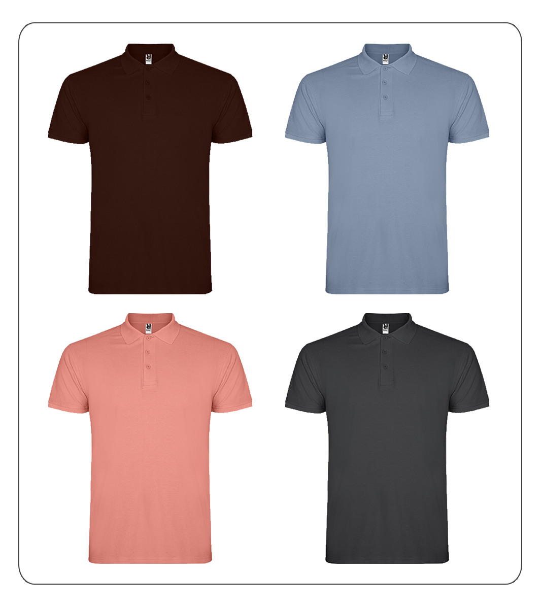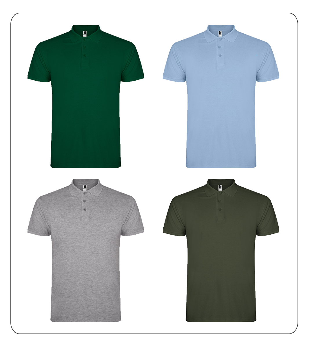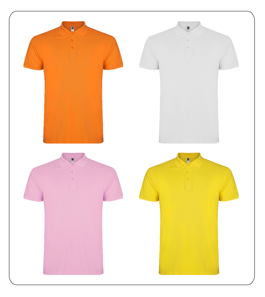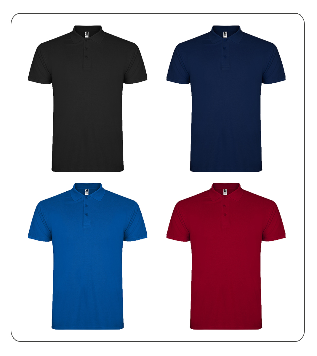 Pólo para homem com 200gr. Tapa costuras reforçado no interior da gola e gola e debruado da manga canelados.