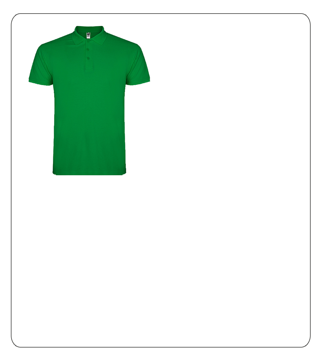 Pólo para homem com 195gr. Gola e mangas em Rib, fita de reforço na gola e carcela reforçada com 3 botões à cor. Parte inferior com aberturas laterais e botão suplente na costura interior.